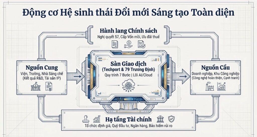 Theo định hướng của Luật Chuyển giao công nghệ, việc phát triển thị trường khoa học và công nghệ, trong đó có sàn giao dịch công nghệ, là một trong những giải pháp quan trọng thúc đẩy đổi mới sáng tạo.